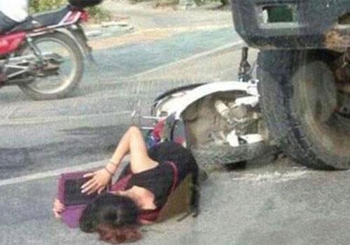 Uma estudante chinesa sofreu um acidente de moto e resolveu fazer algo diferente enquanto esperava socorro. Ainda deitada no asfalto, ela pegou seu tablet e começou a estudar inglês.