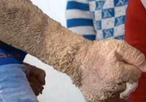 A criança foi apelidada de ?garoto lagarto? porque possui uma condição rara que faz com que ele tenha escamas em de pelos normais na pele.