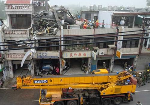 Duas pessoas - piloto e um militar - ficaram feridos após um helicóptero Apache, de fabricação norte-americana, cair no telhado de um prédio em construção em Taoyuan, no norte de Taiwan, nesta sexta-feira (25). O Acidente ocorreu durante um treinamento de rotina.