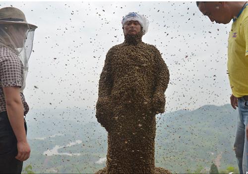 Um homem de 34 anos, morador de Chongqing, na China, mostrou muita coragem ao permitir que 486 mil abelhas se instalassem em seu corpo.