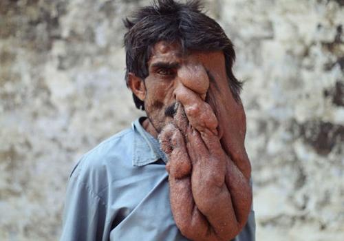 Um homem indiano, que possui uma deformidade facial, vive sofrendo com constantes dores depois de desistir de tentar remover seu tumor da face. Chana Lal, de 35 anos, não pode comer ou falar corretamente por conta do tumor que cresceu em seu rosto, caindo sobre o peito.