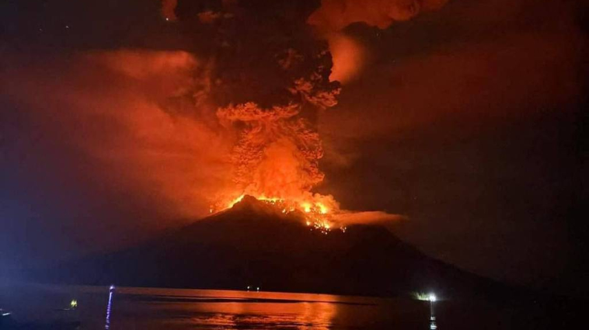 O monte Ruang, localizado na província de Sulawesi, entrou em erupção na terça-feira à noite e continuou ativo durante o dia seguinte, expelindo lava e uma enorme nuvem de fumaça, segundo agências de vulcanologia e geologia.