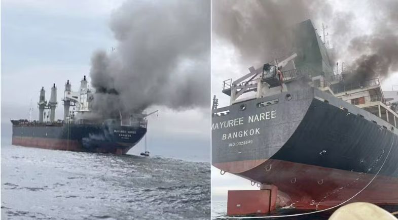 A proprietária do navio, a Mitsui O.S.K., disse que todos os tripulantes estão a salvo;