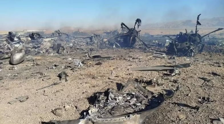 Destroços em Isfahan, no Irã, do que Teerã afirma serem de aeronaves militares dos EUA. | Foto: Divulgação/Guarda Revolucionária do Irã