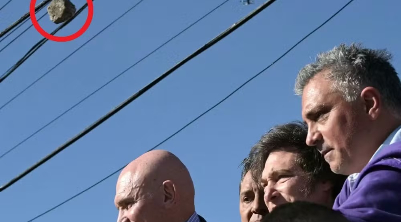 Milei estava acompanhado do deputado José Luis Espert. De acordo com um porta-voz, ninguém ficou ferido.