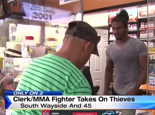 Mayura Dissayanake tem um cartel modesto no MMA, com duas vitórias e uma derrota. O lutador do Sri Lanka não atua desde 2012, mas suas habilidades nas artes marciais foram fundamentais para impedir um assalto na loja de conveniência de um posto de gasolina em Houston (EUA), onde trabalha. Um funcionário do estabelecimento voltava do banco e, ao sair do carro com uma sacola nas mãos, foi atacado por dois homens que saltaram de outro veículo e tentaram lhe roubar. Dissayanake estava atrás do balcão no momento e chegou chutando um e socando o outro. A dupla tentou voltar para o carro, mas apenas um conseguiu, com o outro sendo impedido pelo cingalês.