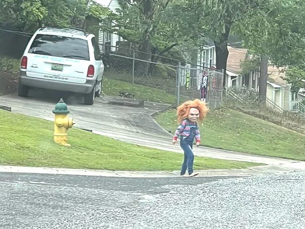 Um garoto de 5 anos saiu pelas ruas da cidade de Pinson, no estado do Alabama (EUA), vestido com a fantasia do boneco Chucky, conhecido pela saga de filmes "Brinquedo assassino".