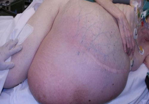 A mulher, que não foi identificada pela imprensa a pedido da família, não procurou ajuda antes porque estava com muito medo do que o médico falaria. O inchaço expandiu o estômago em 20 vezes o seu tamanho habitual.