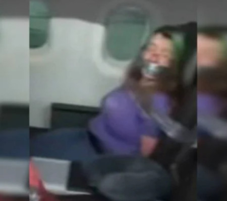 No trajeto dos passageiros até a saída é possível ouvir a mulher gritando “Vocês! Vocês! Vocês!”, enquanto os comissários de bordo acenavam calmamente com a cabeça, se despedindo das pessoas. Muito agitada, a mulher se contorcia com os braços aparentemente colados ao assento. A fita prateada também havia sido colada sobre a boca da passageira.