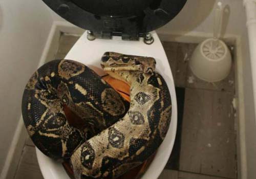Ela saltou instantaneamente e teve uma grande surpresa ao ver a cobra entrando novamente pelo ralo do vaso sanitário.