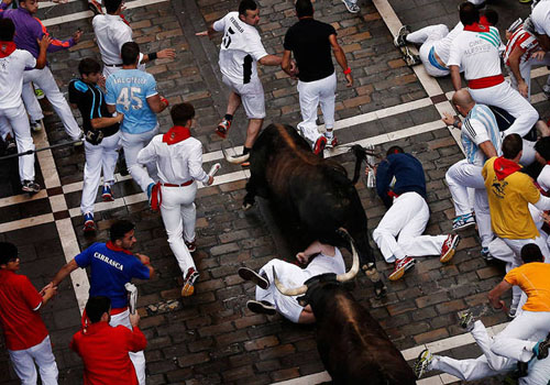 Pelo menos seis pessoas ficaram feridas nesta terça-feira (8) no segundo dia da corrida de touros da tradicional Festa de São Firmino, que acontece todos os anos na cidade de Pamplona, na Espanha.