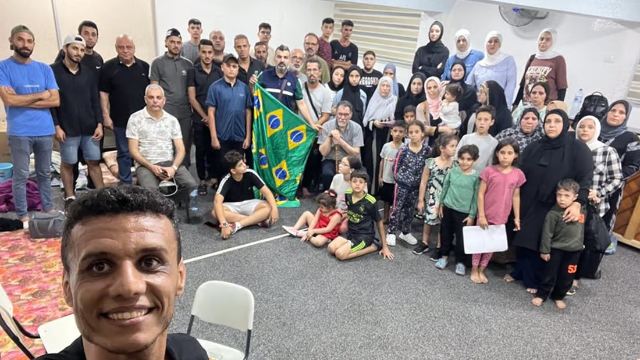 O grupo de brasileiros em Gaza é composto por 34 pessoas. Dessas, 24 são brasileiros, sete são palestinos com RNM (Registro Nacional Migratório) e três palestinos. Do total, 18 são crianças, 10 são mulheres e seis são homens.