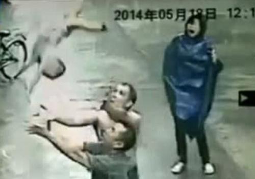 Li disse: "Eu nem pensei muito na hora. Eu estava com medo de não conseguir pegá-lo, mas o meu instinto falou mais alto?. A criança foi colocada nos braços de uma mulher, que acredita-se ser sua mãe, que foge, embalando o bebê.
