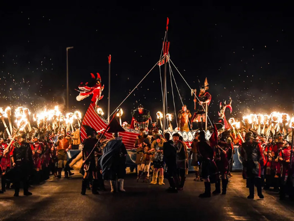O evento, que marca o fim da temporada de Natal, é popular entre os turistas. Tradicionalmente, envolve cerca de mil participantes do sexo masculino conhecidos como guizers, que usam trajes vikings e se dividem em esquadrões para desfilar pela cidade.