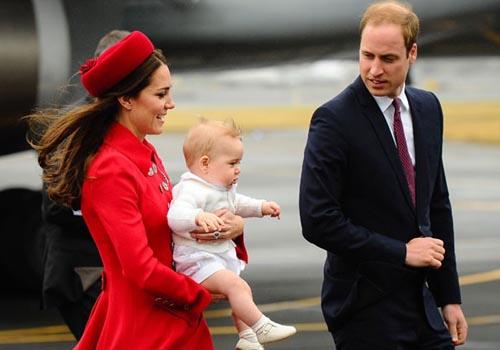 O pequeno príncipe George, terceiro na linha de sucessão da coroa britânica, desembarcou nesta segunda-feira (7) na Nova Zelândia com os pais, o príncipe William e Catherine, na primeira visita oficial do bebês de oito meses.
