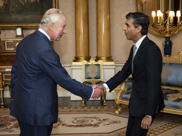 Sunak foi recebido em Buckingham pelo rei Charles III, que, seguindo os protocolos da Constituição britânica, vai pedir que o milionário filho de indianos forme um governo. Essa foi a primeira vez que Charles III participará dessa cerimônia.