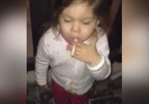 Um vídeo absurdo mostra uma criança de aproximadamente 2 anos de idade fumando um cigarro. A menina aparece tragando o cigarro por várias vezes antes de respirar a fumaça escura.