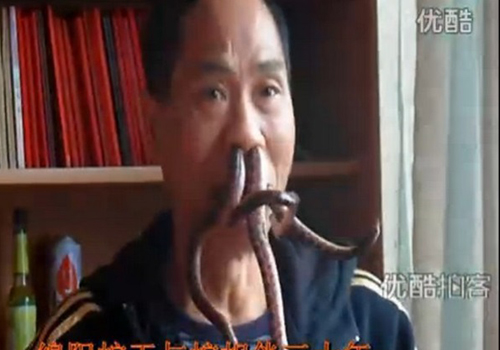 Um homem de 52 anos, chamado Liu Yuanfei, vem chamando a atenção por conta de um vídeo no mínimo bizarro e corajoso, onde ele aparece colocando cobras em seu nariz e as retirando pela boca de forma surpreendente.