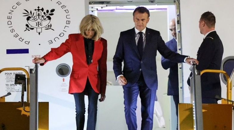 Um vídeo que circula nas redes sociais mostra um momento inusitado entre o presidente da França, Emmanuel Macron, e a primeira-dama, Brigitte Macron, durante o desembarque do casal no Vietnã, na noite de domingo (25), primeira etapa de uma viagem ao Sudeste Asiático.