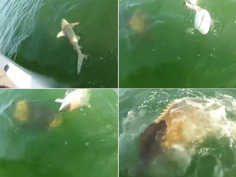 Vídeo impressionante mostra peixe devorando um tubarão nos Estados Unidos