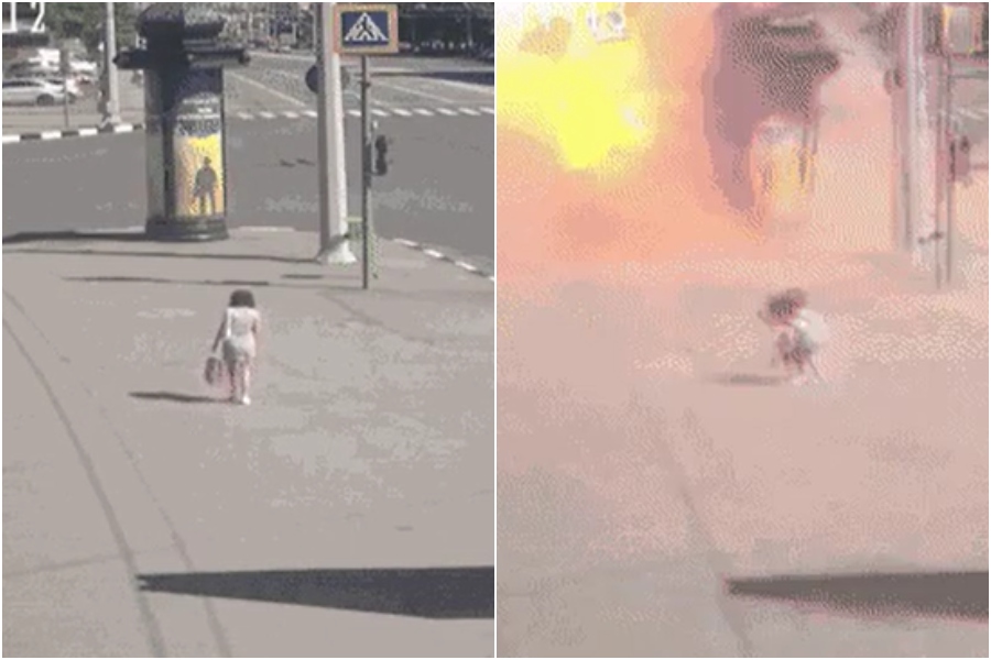Imagens de uma câmera de segurança flagraram o momento em que uma bomba russa explodiu na cidade ucraniana de Kharkiv e, por pouco, não atingiu uma mulher que andava pela rua a poucos metros da explosão. A filmagem repercutiu nesta segunda-feira (24) na Internet. O ataque ocorreu no último sábado (22).