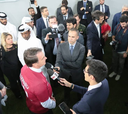 Visivelmente mal-humorado, o que não acontecia desde o início da viagem ao Oriente Médio, Bolsonaro se recusou pela segunda vez  a responder sobre a reação do Supremo ao tuíte de ontem. Ao chegar de sua agenda com o príncipe saudita, o presidente se aproximou da imprensa dizendo:
