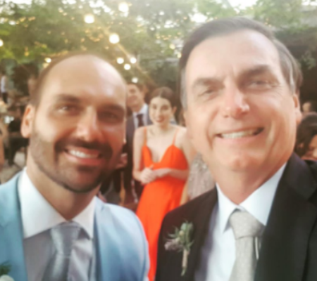O presidente Jair Bolsonaro publicou em sua rede social uma foto junto com o filho Eduardo Bolsonaro, que se casa neste sábado com a psicóloga Heloísa Wolg. Na postagem escreveu: "Que Deus proteja essa família que se forma nessa data. Aos 35 anos Eduardo entra no time dos homens sérios (kkkkk).