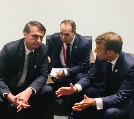 O presidente Jair Bolsonaro e o presidente da França, Emmanuel Macron, tiveram um encontro de 20 minutos em Osaka, no Japão, durante o G20. Bolsonaro sinalizou a Macron que o Brasil vai continuar no Acordo do Clima de Paris e disse esperar o apoio da França para o acordo de livre comércio da União Europeia com o Mercosul.