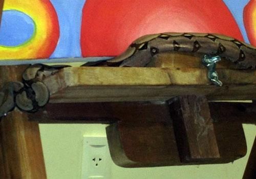A cobra estava enrolada nos cavaletes das telas usadas em aulas práticas pelos alunos da instituição.