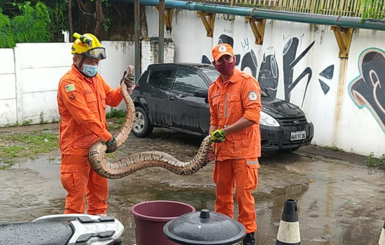 Uma jiboia de quase dois metros foi resgatada pelo Corpo de Bombeiros na manhã desta segunda-feira (07), dentro de uma oficina na Avenida Miguel Rosa, no bairro Piçarra, zona Sul de Teresina.