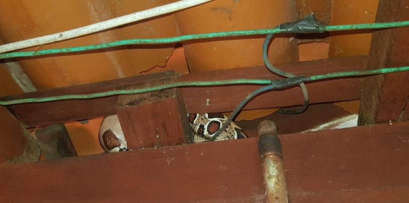 Na tarde de quinta-feira (18/07), uma nova ocorrência envolvendo jibóia foi registrada na cidade de Piripiri e desta vez com risco de uma tragédia, já que a cobra que foi encontrada no teto de uma residência na rua Vereador Martinho Fausto, no bairro Paciência, estava praticamente enroscada nos fios da rede elétrica do local. As informações são do Mais Piripiri