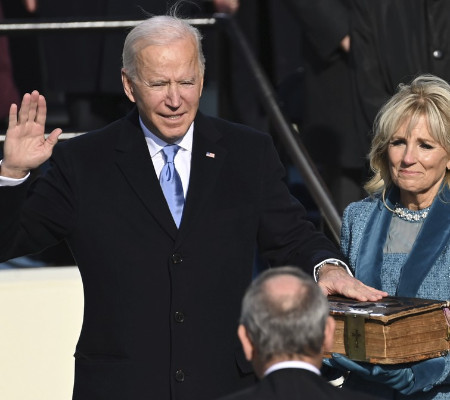 O democrata venceu as eleições de novembro com ampla maioria dos votos: foram 306 votos eleitorais contra 232 do seu adversário.
