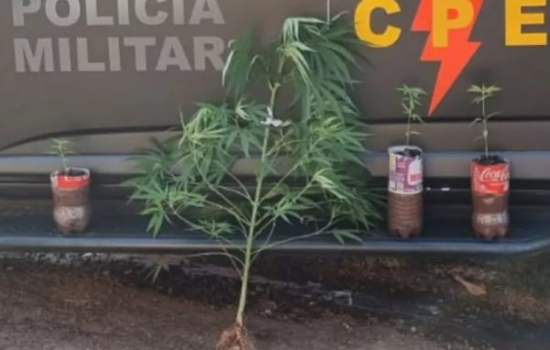 Ao chegarem à casa do suspeito, os policiais militares encontraram as plantas de maconha, uma delas no solo, já mais adulta, e outras três, mantidas em garrafas pet.