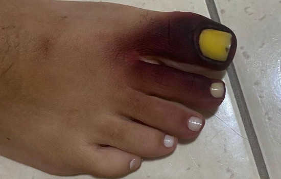"Matei ele, calcei o tênis novamente e segui com o meu dia. Quando eu cheguei em casa 19h da noite, quando eu tirei um tênis, vi que o meu pé estava desse jeito! Eu entrei em desespero total!! Comecei a gritar, a pedir socorro! Minha mãe me colocou no box [do banheiro], comecei a lavar o pé com sabão e nada dessa 'mancha' sair. Liguei para o meu namorado e logo corremos para o hospital", relatou ela em seu perfil no Instagram.