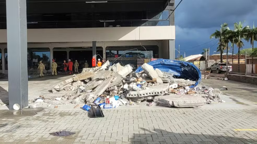 De acordo com o Corpo de Bombeiros, três mulheres morreram após o desabamento de uma laje em um supermercado, em Pontal do Paraná, litoral do estado. A parte da estrutura que cedeu, sustentava seis caixas d'água do estabelecimento, que ficou alagado após o acidente.