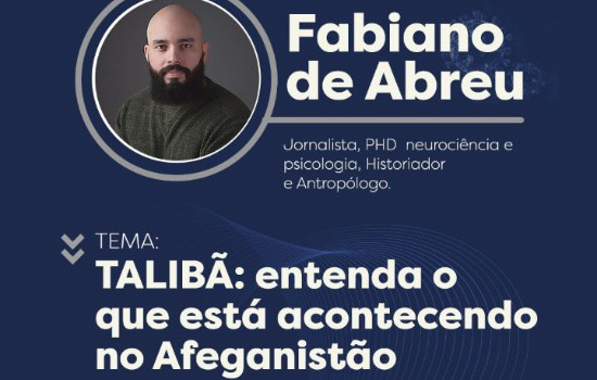 Desta vez, o bate-papo englobará o tema em voga do momento no cenário internacional 'Talibã: entenda o que está acontecendo no Afeganistão', contando com a presença do jornalista, PHD em neurociência e psicologia, historiador e antropólogo, Fabiano de Abreu. A apresentação será do jornalista Francy Teixeira
