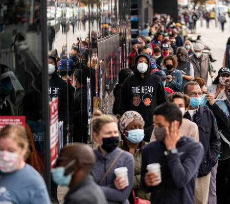 Eleitores esperaram horas para votar e imagens de filas gigantescas foram registradas. A pressa para votar está levando especialistas em eleições a prever que um recorde de 150 milhões de votos pode ser batido – e as taxas de participação podem ser maiores do que em qualquer eleição presidencial desde 1908.