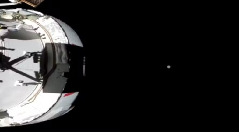 Segundo a programação, a cápsula Orion deixou a órbita da Terra 25 horas depois da decolagem. Estão a bordo: Três americanos e um canadense. Esta é a primeira vez que seres humanos deixam a órbita da Terra desde a missão Apollo 17, em 1972.