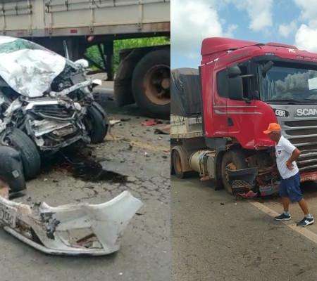 "Segundo o motorista da carreta, o carro de passeio seguia em zigue-zague, tentou tirar o caminhão para não bater no veículo, mas não conseguiu e acabou colidindo." contou o policial.
