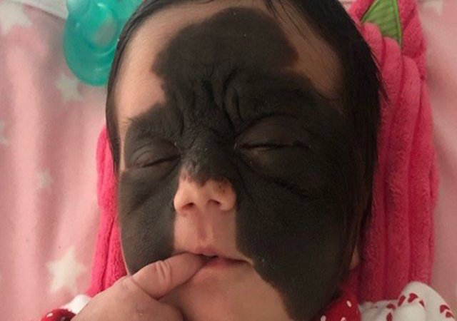 A mancha que cobre quase todo o rosto da pequena Luna Tavares Fenner, nascida no último dia 7, surpreendeu sua mãe, Carolina Fenner, que não tem casos semelhantes na família. A condição, de fato, é rara. Chamada de nevo melanocítico congênito, ela afeta aproximadamente 1% dos recém-nascidos e ocorre devido a uma mutação nos melanócitos (células produzidas na crista neural ainda no embrião).
