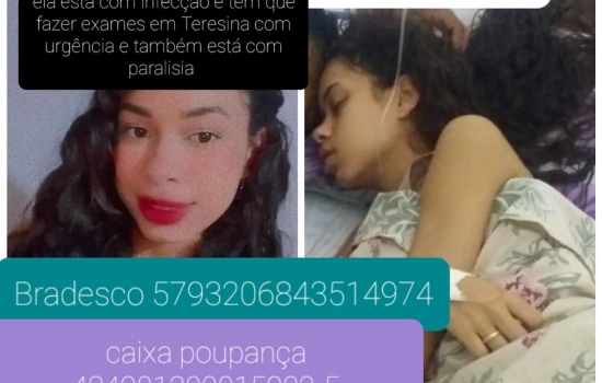 Quem puder ajudar, Michele pode ser encontrada na avenida Dr. Raimundo Santos nas dependências do Hospital Regional Manoel de Souza Santos, ou no telefone Whatsapp (86) 9 8147-4662. Ela pede o apoio da população e agradece a todos que ajudarem PIX CPF: 085.751.785-63.