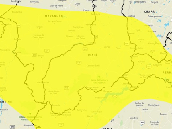 Grande parte do Piauí deve ter chuvas intensas entre esta quinta-feira (27) e sexta-feira (28), segundo o Instituto Nacional de Meteorologia (INMET). Ao todo, 183 cidades do Piauí foram incluídas em alerta meteorológico com previsão de chuva entre 20 e 30 mm/h ou até 50 mm/dia e ventos com velocidades entre 40 e 60 km/h.