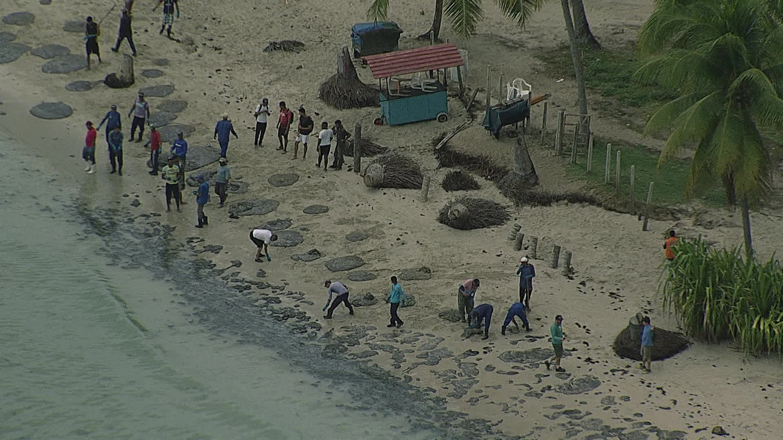 As manchas voltaram a surgir no estado na quinta (17), em São José da Coroa Grande. Peritos da Polícia Federal foram à cidade recolher amostras do material que chegou à praia. Um inquérito federal investiga a origem das manchas, que atingem todo o Nordeste.