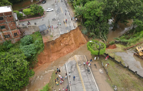 Dez rodovias estão parcial ou totalmente interditadas, segundo as polícias rodoviárias estadual e federal. Em Ubatã, um trecho da BR-330 cedeu, abrindo uma cratera.