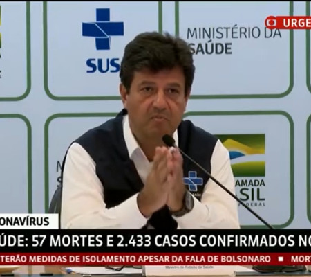 "E eu vejo nesse sentido a grande colaboração da fala do presidente. Chamar a atenção de todos que é preciso pensar na economia" - Luiz Henrique Mandetta, ministro da Saúde
