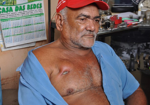 Portador de marca-passo há seis anos, Raimundo Henrique relata que passou quatro anos com o primeiro marca-passo [encarregado por regular a frequência cardíaca com estímulos elétricos]. Há dois anos, substituiu por este aparelho que desde que foi implantado, segundo ele, provoca dores constantes. No último mês, o local apresentou inflamação e parte do aparelho saiu do corpo.
