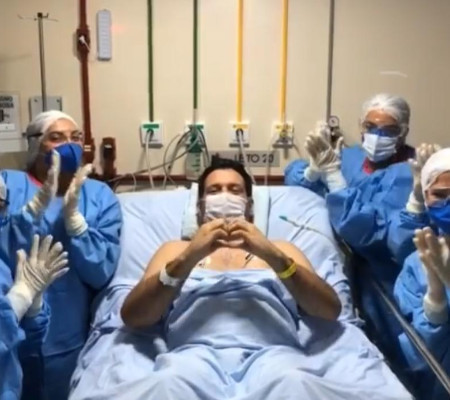 A jornalista Neyara Pinheiro, colega de profissão do apresentador Marcelo Magno, de 37 anos, postou um ‘boomerang’ em sua rede social nesta quarta-feira (25), em que mostra o apresentador fazendo um coração com as mãos ao lado da equipe de saúde do Hospital Prontomed, no Centro de Teresina, onde está internado desde a semana passada após ter sido diagnosticado com Covid-19, doença causada pelo novo coronavírus.