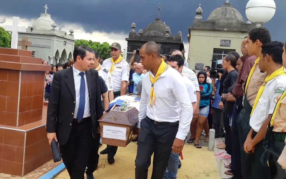 O caixão com o corpo do jovem foi levado sob aplausos. Samuel era desbravador da Igreja Adventista do Sétimo Dia e gostava de desenhar, segundo os amigos. Os amigos desbravadores acompanharam o enterro uniformizados.