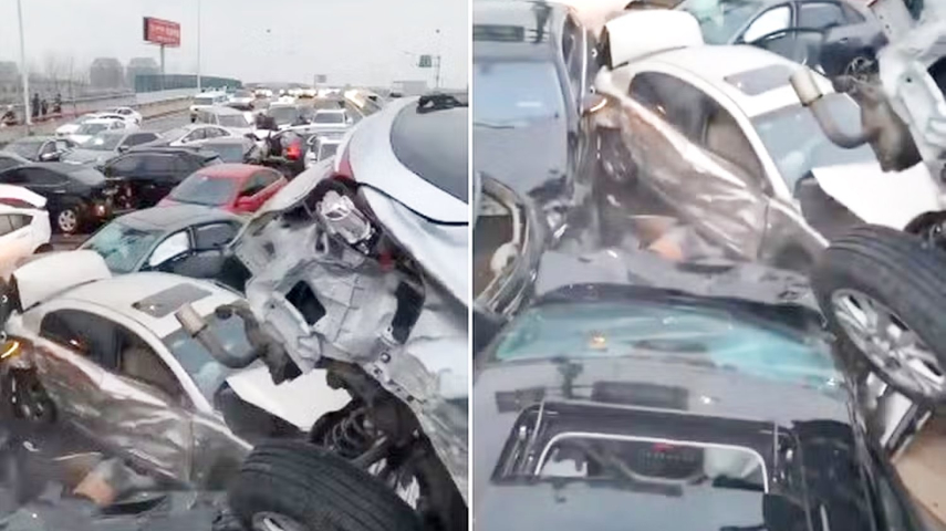 'Mega engavetamento' em via congelada na China tem colisão de mais de 100 carros