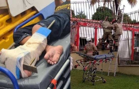 Um menino de 12 anos teve uma lança de ferro atravessada no pé ao tentar pular a grade de uma igreja em Manaus. O caso ocorreu no último sábado.